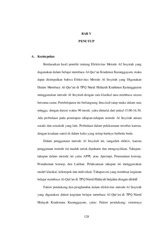 Penelitian ini bertujuan (1) untuk mengetahui teknik pelaksanaan metode Al-Insyirah yang digunakan dalam belajar membaca Al-Qur’an di TPQ Nurul Hidayah Kradenan Karanggayam. (2) untuk mengetahui faktor pendukung dan faktor penghambat pada penggunaan metode Al Insyirah yang digunakan dalam belajar membaca Al-Qur’an di TPQ Nurul Hidayah Kradenan Karanggayam. Penelitian ini menggunakan penelitian kualitatif. Subjek dalam penelitian ini adalah kepala TPQ, ustadz ustadzah, wali santri, dan santri TPQ Nurul Hidayah Kradenan Karanggayam. Metode pengumpulan data yang digunakan adalah observasi, wawancara, dokumentasi serta trigulasi data. Sedangkan teknik analisis data menggunakan reduksi data, penyajian data, serta penarikan kesimpulan. Hasil penelitian ini dapat disimpulkan bahwa: (1) Teknik pelaksanaan metode Al Insyirah yang digunakan dalam belajar membaca Al-Qur’an, yaitu Appersepsi, Penanaman Konsep, Pemahaman Konsep, dan Latihan; (2) Efektivitas pengunaan metode Al Insyirah yang digunakan dalam belajar membaca Al-Qur’an, yaitu efektif karena sesuai yang diharapkan dan sesuai visi misi TPQ Nurul Hidayah; (3) Faktor pendukung penggunaan metode Al Insyirah, yaitu sistem yang rapi dan menyenangkan, ustadz atau ustadzah, dan orang tua, sedangkan faktor penghambatnya, yaitu kemampuan dan usia santri yang berbeda-beda, waktu yang kurang memadai, sarana dan prasarana.