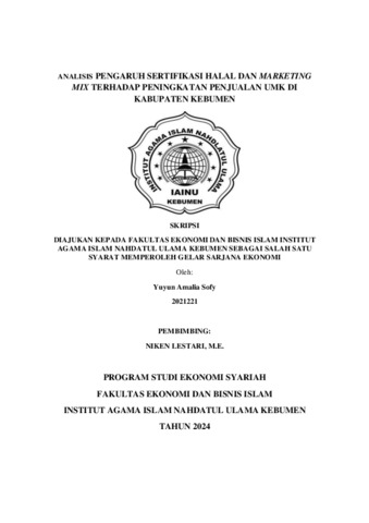 Yuyun Amalia Sofy, NIM.2021221 (2024) Analisis Pengaruh Sertifikasi Halal dan Marketing Mix terhadap Peningkatan Penjualan UMK di Kabupaten Kebumen. Diploma thesis, IAINU Kebumen.