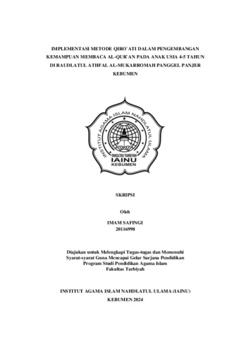 Imam Safingi, NIM. 20116998 (2024) Implementasi Metode Qiro’ati dalam Pengembangan Kemampuan Membaca Al-Qur’an Pada Anak Usia 4-5 Tahun di Raudlatul Athfal Al-Mukarromah Panggel Panjer Kebumen. Other thesis, Institut Agama Islam Nahdlatul Ulama ( IAINU Kebumen).