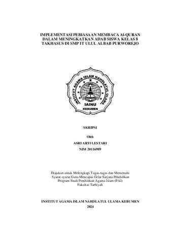 Asri Arti Lestari, NIM. 20116989 (2024) Implementasi Pebiasaan membaca Al-Quran Dalam Meningkatkan Adab Siswa Kelas 8 Takhasusu Di SMP IT Ulul Albab Purworejo. Other thesis, Institut Agama Islam Nahdlatul Ulama ( IAINU Kebumen).