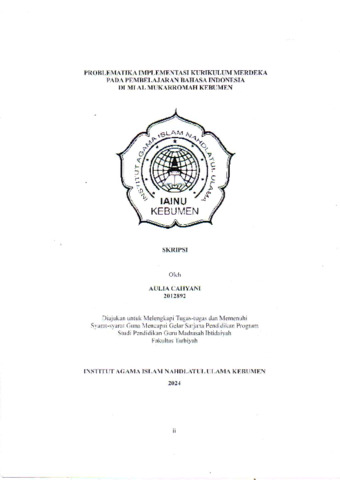 Aulia Cahyani, NIM. 2012892 (2024) Problematika Implementasi Kurikulum Merdeka Pada Pembelajaran Bahasa Indonesia di MI Al Mukarromah Kebumen. Other thesis, Institut Agama Islam Nahdlatul Ulama ( IAINU Kebumen).