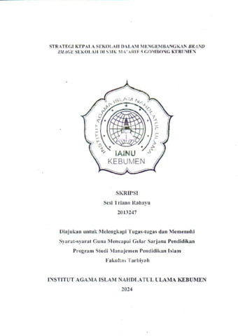 Sesi Triana Rahayu, NIM. 2013247 (2024) . Strategi Kepala Sekolah dalam Mengembangkan Brand Image Sekolah di SMK Ma’arif 5 Gombong Kebumen. Other thesis, Institut Agama Islam Nahdlatul Ulama ( IAINU Kebumen).