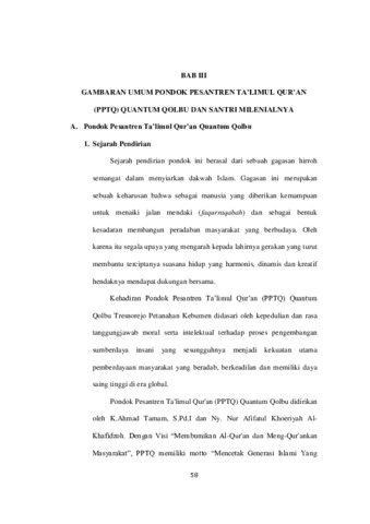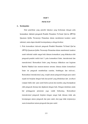 Tujuan Penelitian ini adalah untuk: (1) mengetahui pola komunikasi pengasuh Pondok Pesantren Ta‟limul Qur‟an (PPTQ) Quantum Qolbu Tresnorejo Petanahan dalam membentuk karakter santri milenial. (2) mengetahui faktor pendukung dan penghambat dalam membentuk karakter santri milenial di Pondok Pesantren Ta‟limul Qur‟an (PPTQ) Quantum Qolbu Tresnorejo. Penelitian ini merupakan jenis penelitian kualitatif karena data yang dikumpulkan dalam bentuk kata-kata atau gambar, sehingga tidak menekankan pada angka, dimana peneliti mengumpulkan data dengan melakukan studi mendalam berupa wawancara dengan pengasuh sebagai sebagai key informant (pemberi informasi kunci), lurah pondok dan beberapa pengurus pondok sebagai informan tambahan serta observasi terhadap fenomena yang terjadi dan mendokumentasikan data tersebut. Kemudian data tersebut dianalisis menggunakan metode deskriptif kualitatif yang dimaksudkan untuk mendeskripsikan situasi yang bersifat fakta. Data yang terkumpul dianalisis menggunakan reduksi data, penyajian data, dan verifikasi data. Hasil penelitian ini menyimpulkan bahwa 1) Pola komunikasi pengasuh Pondok Pesantren Ta‟limul Qur‟an (PPTQ) Quantum Qolbu Tresnorejo Petanahan dalam membentuk karakter santri milenial sudah sangat baik dimana komunikasi yang dilakukan oleh pengasuh pondok terdiri dari 3 yaitu komunikasi linier, interaksional dan transaksional. Komunikasi linier yang biasanya dilakukan saat kegiatan Ratibul Haddad dan momen-momen tertentu dimana dalam komunikasi linier ini pengasuh memberikan nasehat, bimbingan dan mitivasi.. Komunikasi interaksional yang terjadi antara pengasuh dengan para santri sejauh ini berjalan dengan baik dan positif yang dibuktikan dari feedback (umpan balik) dari para santri bahwa pesan dan nasehat yang disampaikan oleh pengasuh diserap dan dipahami dengan baik. Dengan demikian untuk hal pelanggaran peraturan juga sudah berkurang. Komunikasi transaksional pengasuh berjalan dengan sangat baik dimana tidak ada kesenjangan antara pengasuh dan para santri, dan juga tidak terputusnya suatu komunikasi antara pengasuh dan para santri. 2) Faktor pendukung dalam membentuk karakter santri milenial Pondok Pesantren Ta‟limul Qur‟an (PPTQ) Quantum Qolbu Tresnorejo Petanahan antara lain adalah keterampilan komunikasi pengasuh, keteladaan pengasuh dan komunikasi antara pengasuh, pengurus dan santri yang baik. Adapun faktor penghambantnya adalah perbedaan generasi, keteladanan beberapa pengurus yang kurang maksimal, pergaulan teman dan pola asuh dan pola komunikasi di rumah.