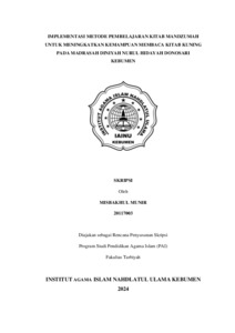 Misbakhul Munir. 20117003. Implementasi Metode Pembelajaran Kitab Kuning Untuk Meningkatkan Kemampuan Membaca Pada Madrasah Diniyah Nurul Hidayah Donosari