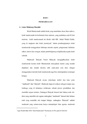 kuning dan menambah pengetahuan, pengalaman membaca arab pegon dan santri bisa menambah perbendaharaan kata dari bahasa arab yang terkandung didalm kitab Safinah dan Mandzumah lewat metode hafalan, santri yang notabenya tinggal di desa bisa merasakan pelajaran khas para santri yang di pondok pesantren, disamping itu dari aura kesakralan kitab kuning bisa meningkatkan karakter yang berakhlakul karimah. Implikasi dari penelitian ini adalah perlunya peningkatan kompetensi dewan asatidz Madrasah Diniyyah Nurul Hidayah dalam mengembangkan pembelajaran kitab kuning yang lebih inovatif dan kreatif, serta pentingnya dukungan dari, orang tua, dan masyarakat untuk menciptakan generasi yang berilmu dan berakhlakul