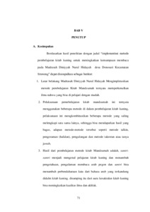 karimah. Kata kunci: Implementasi, Kitab Kuning, Madrasah Diniyyah Nurul Hidayah Donosari,