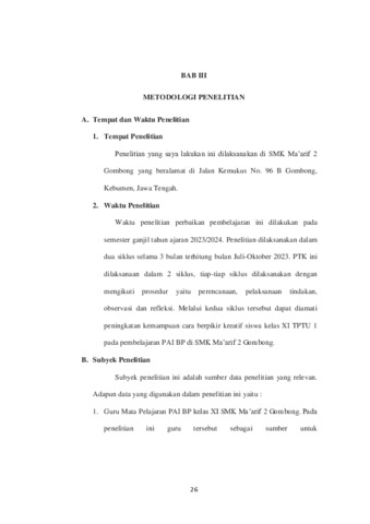 PAI BP dengan penerapan metode mind mapping di kelas XI TPTU 1 SMK Ma‟arif 2 Gombong; (3) mengetahui peningkatan ketrampilan berpikir kreatif siswa dengan diterapkannya metode mind mapping dalam mata pelajaran PAI BP
