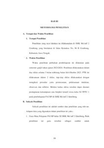 tindakan, observasi pengamatan, dan refleksi. Subyek penelitian ini yaitu siswa kelas XI TPTU 1 yang terdiri dari 24 orang siswa. Sumber data berasal dari siswa kelas XI TPTU 1 yang berjumlah 24 orang, serta hasil observasi dan hasil karya siswa setelah dilakukan tindakan. Teknik pengumpulan data menggunakan observasi, wawancara, dan dokumentasi.