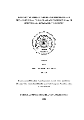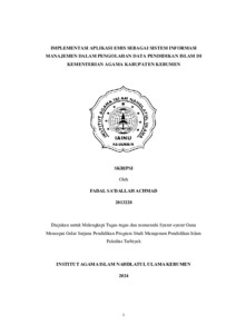 Fadal Sa’dallah Achmad, NIM. 2013228 (2024) Implementasi Aplikasi EMIS sebagai Sistem Infornasi Manajemen dalam Pengelolaan Lembaga Pendidikan Islam di Kementerian Agama Kabupaten Kebumen. Other thesis, Institut Agama Islam Nahdlatul Ulama ( IAINU Kebumen).