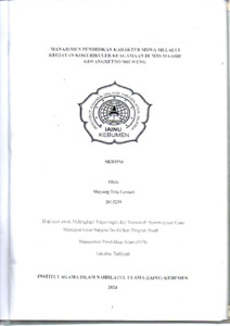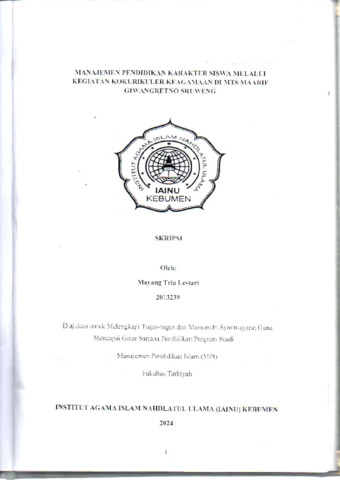 Mayang Tria Lestari, NIM. 2013239 (2024) Manajemen Pendidikan Krakter Siswa melalui Kegiatan Kokurikuler Keagamaan di MTS Maarif Giwangretno Sruweng. Other thesis, Institut Agama Islam Nahdlatul Ulama ( IAINU Kebumen).