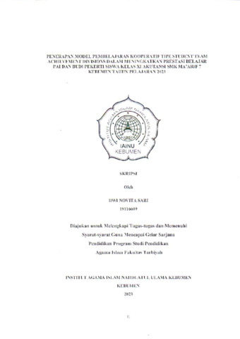 Dwi Novita Sari, NIM. 19116609 (2023) Penerapan Model Pemnelajaran Kooperatif Tipe Student Team Achievement Divisions Dalam Meningkatkan Prestasi Belajar PAI Dan Budi Pekerti Siswa Kelas XI Akutansi SMK Ma’arf 7 Kebumen Tahun Pelajaran 2023. Other thesis, Institut Agama Islam Nahdlatul Ulama ( IAINU Kebumen).