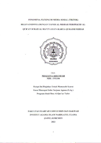 Miazatul Khanifah, NIM. 1931104 (2023) Fenomena Flexing Di Media Sosial (Tiktok) Relevansinya Dengan Tafsir Al – Misbah Surah Al Ma’un Ayat 6 Karya Quraish Shihab. Other thesis, Institut Agama Islam Nahdlatul Ulama ( IAINU Kebumen).
