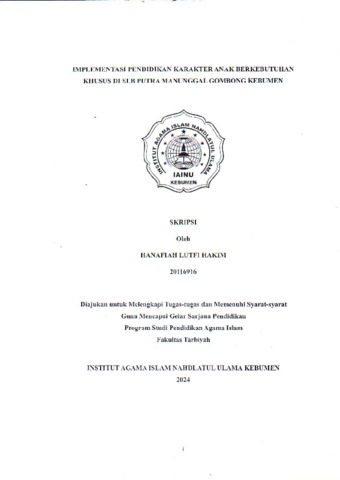 Hanafiah Lutfi Hakim, NIM.20116916 (2024) Implementasi Pendidikan Karakter Di SLB Putra Manunggal Gombong, Kebumen. Diploma thesis, Institut Agama Islam Nahdlatul Ulama ( IAINU) Kebumen.