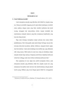 Nisa Ul Fitroh.19116704. Perananan Orang Tua Dalam Pembinaan Akhlak Anak Di Dukuh Mendit Desa Kritig Kecamatan Petanahan Kabupaten Kebumen. Latar belakang penelitian ini adalah anak yang cenderung kurang hormat terhadap orang tua, melawan orang tua, kurang disiplin dalam beribadah, suka berbohong dan sering berkata tidak sopan. Tujuan penelitian adalah: (1). Untuk mengetahui perananan orang tua dalam pembinaan akhlak anak di Dukuh Mendit, Desa Kritig, Keamatan Petanahan