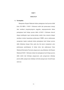 penelitian ini adalah untuk menjelaskan manajemen kepala madrasah dalam peningkatan hasil belajar peserta didik di MAN 1 Kebumen, serta menjelaskan kendala yang dialami dan solusi yang dilakukan oleh kepala madrasah dalam
