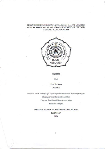 Feni Tri Vera, NIM. 20116870 (2024) PERAN GURU PENDIDIKAN AGAMA ISLAM DALAM MEMBINA AKHLAK SISWA KELAS VII SEKOLAH MENENGAH PERTAMA NEGERI 2 KARANGGAYAM. Other thesis, Institut Agama Islam Nahdlatul Ulama ( IAINU Kebumen).