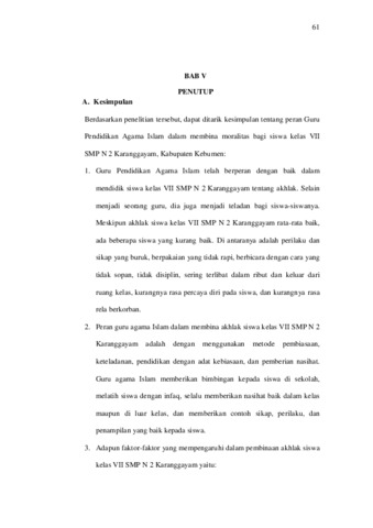 Tujuan penyusunan penelitian ini adalah untuk mengetahui bagaimana peran guru khususnya guru pai dalam membina akhlak siswa kelas VII di SMP N 2 Karanggayam. pembinaan akhlak sangatlah penting dilakukan oleh guru pai, karena akhlak memliki fungsi menjadikan perilaku manusia menjadi lebih beradab serta mamu mengidentifikasi persoalan hidup. Penelitian ini menggunakan pendekatan dari metode kualitatif. Hasil penelitian menunjukan bahwa: 1) Peran guru Pendidikan Agama Islam (PAI) dalam membina akhlak pada siswa sudah dapat dikategorikan baik dalam pelaksanaannya, guru Pendidikan Agama Islam (PAI) sudah menerapkan metode keteladanan, nasihat dan pengawasan bagi siswa. 2) Upaya yang dilakukan oleh guru Pendidikan Agama Islam (PAI) dalam membina akhlak siswa, yaitu: a) Memberikan bimbingan kepada siswa, b) Selalu mencontohkan perilaku yang baik seperti selalu mengucapkan salam, sopan, santun, disiplin, dan c) Memberikan semangat dalam belajar serta mengajarkan sikap rela berkorban. 3) Faktor pendukung dalam membina akhlak pada siswa yaitu: a) Kesadaran dari diri siswa, b) Teknik Pembelajaran, dan c) Kesadaran dari orangtua, warga sekolah dan masyarakat 4) Faktor penghambat dalam membina akhlak siswa yaitu, a) Kurangnya dukungan dari orangtua, b) lingkungan yang kurang baik, c) Siwa yang sulit untuk dinasihati.