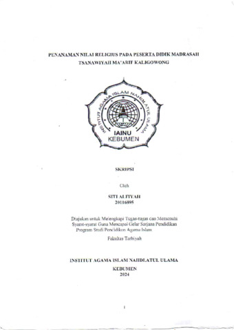 Siti Alfiyah, NIM.20116895 (2024) Penanaman Nilai Religius Pada Peserta Didik di Madrasah Tsanawiyah Ma‟arif Kaligowong. Diploma thesis, IAINU Kebumen.