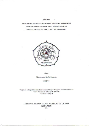 Muhammad Roiful Mahbub, NIM. 2012904 (2024) Analisis Kemampuan Menulis Karangan Deskriptif Dengan Media Gambar Pada Pembelajaran Bahasa Indonesia Di Kelas V MI Sidomoro Tahun Ajaran 2024/2025. Other thesis, Institut Agama Islam Nahdlatul Ulama ( IAINU Kebumen).