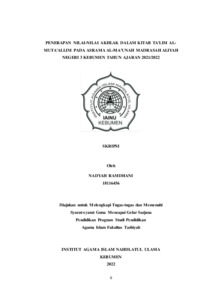 Penerapan Nilai-Nilai Akhlak dalam Kitab Ta'lim Al-Muta'allim pa, NM.18116456 (2022) Penerapan Nilai-Nilai Akhlak dalam Kitab Ta'lim Al-Muta'allim pada Asrama Al-Ma'unah Madrasah Aliyah Negeri 3 Kebumen Tahun Ajaran 2021/2022. Diploma thesis, Institut Agama Islam Nahdlatul Ulama ( IAINU) Kebumen.
