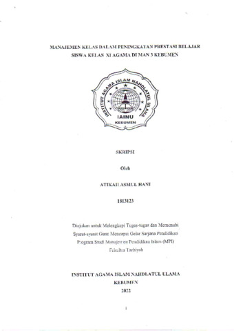 Atikah Asmul Hani, NIM.1813123 (2022) Manajemen Kelas dalam Meningkatkan Prestasi Belajar Siswa Kelas XI Agama di MAN 3 Kebumen. Diploma thesis, Institut Agama Islam Nahdlatul Ulama ( IAINU) Kebumen.