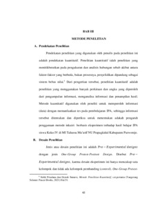 Tujuan penelitian adalah: (1) untuk mengetahui bagaimana penerapan metode inkuiri berbasis eksperimen terhadap hasil belajar IPA pada siswa Kelas IV di MI Tahassu Ma‟arif NU Prapagkidul; (2) untuk mengetahui bagaimana pengaruh metode inkuiri berbasis eksperimen terhadap hasil belajar IPA pada siswa Kelas IV di MI Tahassus Ma‟arif NU Prapagkidul. Penelitian ini merupakan penelitian kuantitatif. Siswa yang diteliti adalah siswa kelas IV B di MI Tahassus Ma'arif NU Prapagkidul yang berjumlah 25 siswa. Data yang dikumpulkan berupa data pelaksanaan pembelajaran dengan menggunakan metode inkuiri dan hasil belajar. Analisi data yang digunakan adalah analisi kuantitatif menggunakan pendekatan statistik. Hasil penelitian menunjukkan bahwa penerapan metode inkuiri berbasis eksperimen dilakukan dengan enam langkah, yaitu: menyajikan masalah, menyusun hipotesis, merancang percobaan, melakukan percobaan, menganalisi data dan menyimpulkan. Kemudian pengaruh metode inkuiri berbasiseksperimen dibuktikan dengan hasil uji hipotesis yang memperoleh nilai sig yang bernilai 0.00 dimana nilai tersebut sesuai dengan kriteria tolak Ho. Maka dapat disimpulkan bahwa Ho ditolak dan Ha diterimadimana Ha berbunyi “Terdapat pengaruh metode inkuiri berbasis eksperimen terhadap hasil belajar siswa pada pelajaran IPA Kelas IV di MI Tahassus Ma‟arif NU Prapagkidul”.