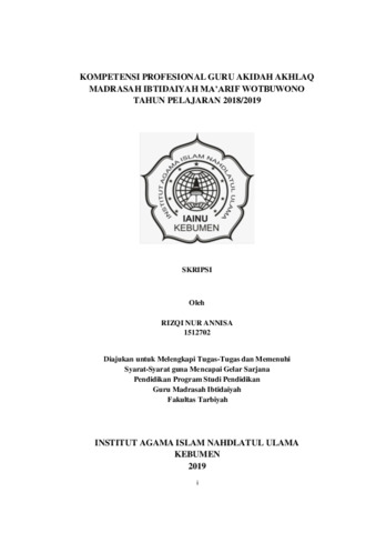 Rizqi Nur Annisa. 1512702. Kompetensi Profesional Guru Akidah Akhlaq MI Ma’arif Wotbuwono Tahun Pelajaran 2018/2019. Rendahnya kualitas pendidikan disebabkan oleh berbagai persoalan salah satunya adalah kompetensi profesional tenaga pendidik. Guru/tenaga pendidik