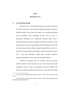 memiliki tugas untuk mengajar dan mendidik peserta didiknya dimana tugas ini merupakan tugas yang sangat strategis dalam profesinya. Oleh karena itu guru harus memiliki kompetensi keguruan yang memadai termasuk kompetensi professional guru. Yang menjadi permasalahan dalam penelitian ini adalah bagaimana Guru Akidah Akhlaq memenuhi kompetensi profesionalnya pada MI Ma’arif Wotbuwono tahun pelajaran 2018/2019 serta usaha madrasah dalam memelihara dan meningkatkan kompetensi professional guru akidah akhlaq MI