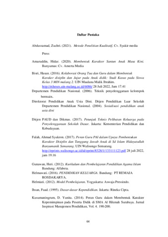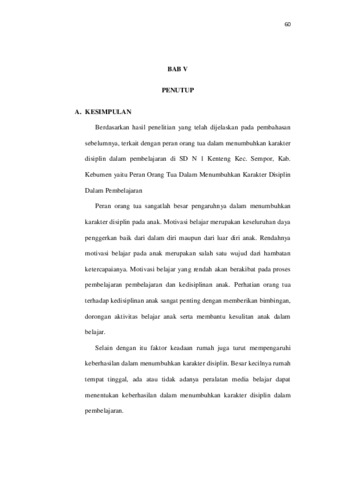 observasi, dan dokumentasi. Adapun subjek penelitian untuk memperoleh data atau fakta dalam penelitian yaitu: (1) Kepala sekolah SD N 1 kenteng (2) guru mapel PAI (3) wali/orang tua siswa. Berdasarkan hasil penelitian peran orang tua dalam menumbuhkan karakter disiplin dalam pembelajaran di SD N 1 Kenteng Kec. Sempor Kab. Kebumen