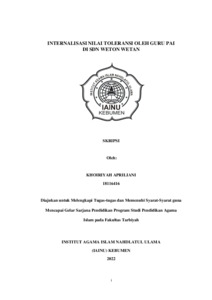 Khoiriyah Apriliani, NIM.18116416 (2022) INTERNALISASI NILAI TOLERANSI OLEH GURU PAI DI SDN WETON WETAN. Diploma thesis, Institut Agama Islam Nahdlatul Ulama ( IAINU) Kebumen.