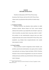 observasi, wawancara, serta dokumentasi. Sedangkan teknik analisis data menggunakan reduksi data,, penyajian data, serta penarikan kesimpulan. Hasil penelitian ini dapat disimpulkan bahwa: (1) Mekanisme Penanaman Nilai Toleransi di SDN Weton Wetan melalui Mata Pembelajaran; Melalui Kebijakan Sekolah; Melalui Pembiasaan; Melalui Perayaan Hari-Hari Besar Keagamaan; (2) Peran Guru Pendidikan Agama Islam adalah melalui nasihat, dengan menjadikan guru sebagai teladan bagi siswa, melalui pembiasaan, mengaitkan materi dengan nilai-nilai toleransi serta melibatkan guru dan siswa