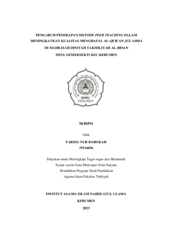 Farida Nur Barokah, NIM.19116656 (2023) Pengaruh penerapan Metode Peer Teaching dalam Meningkatkan kualitas menghafal Al-Qur'an Juz Amma di madrasah Diniyah Takmiliyah Al-Ihsan Desa Gemeksekti Kec. Kebumen. Diploma thesis, Institut Agama Islam Nahdlatul Ulama ( IAINU) Kebumen.