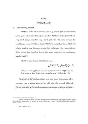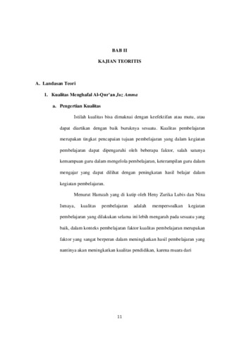 kaidah ilmu tajwid, kefasihan, hafalan (ketepatan susunan ayat-ayat yang dihafal), dan adab dalam menghafal satu surat dalam Al-Qur’an Juz Amma. Penelitian bertujuan