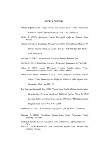 Zulfah Uswatun Khoiriyah, 19116754 (2023) Peran Guru Tahfidz Dalam Meningkatkan Kualitas Hafalan Al-Qur’an Santri Di Pondok Pesantren Tahfidz Tathmainul Qulub Sendangdalem Padureso Kebumen. Other thesis, IAINU Kebumen.