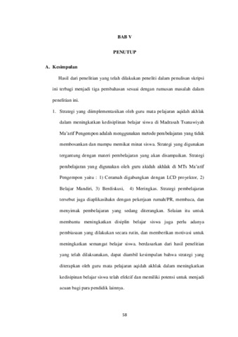 Tujuan dari penelitian ini antara lain : (1) Mendeskripsikan kondisi disiplin belajar siswa di MTs Ma‟arif Pengempon, (2) Mendeskripsikan strategi guru akidah akhlak dalam meningkatkan disiplin belajar siswa di MTs Ma‟arif Pengempon, (3) Mengetahui apa saja hambatan guru akidah akhlak dalam meningkatkan disiplin belajar siswa di MTs Ma‟arif Pengempon. Penelitian ini menggunakan metode kualitatif dengan teknik pengumpulan datanya menggunakan metode wawancara. Salah satu bentuk analisis data yang diterapkan adalah analisis data kualitatif. Metode anaisis data ini melibatkan proses pengumpulan data, penyajian data, pengurangan data, serta pengambilan kesimpulan. Subyek dalam penelitian ini mencangkup kepala madrasah, wakil kepala kurikulum, guru mata pelajaran aqidah akhlak, dan siswa sebagai peserta didik.
