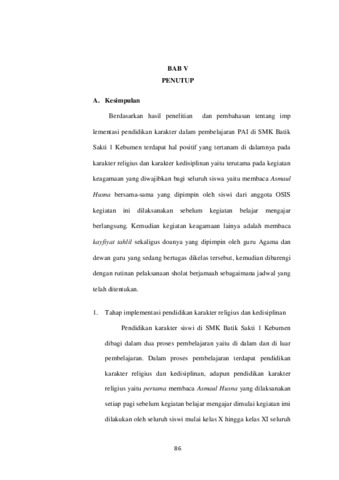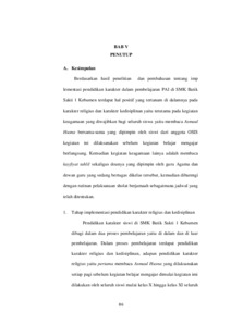 kepekaan terhadap karakter religiusnya. Penelitian ini merupakan penelitian kualitatif dengan metode pengumpulan data menggunakan wawancara mendalam, observasi dan dokumentasi. Data dari penelitian ini adalah hasil wawancara, observasi dan analisis data menggunakan reduksi, display dan verifikasi data. Implementasi pendidikan karakter dalam pembelajaran PAI di SMK Batik Sakti 1 Kebumen terdapat hal positif yang tertanam di dalamnya pada karakter