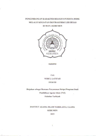 NURUL LATIFAH, 19116755 (2023) Pengembangan Karakter Religius Peserta Didik Melalui Kegiatan Ekstrakurikuler IRMAS di MAN 2 Kebumen Tahun Pelajaran 2022/2023”. Other thesis, IAINU Kebumen.