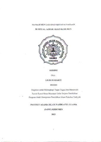 Lilis Sugiarti, 1913213 (2023) Manajemen Layanan Ketatausahaan di MTs Al Azhar Alian Kebumen. Other thesis, IAINU Kebumen.
