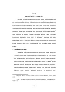 mujahadah di MAN 3 Kebumen. (2) Mengetahui faktor pendukung dan penghambat kegiatan mujahadah di MAN 3 Kebumen. (3) Mengetahui dampak yang dirasakan oleh bapak/ibu guru dari kegiatan mujahadah sebagai upaya pembinaan kompetensi kepribadian guru MAN 3 Kebumen. Pendekatan penelitian