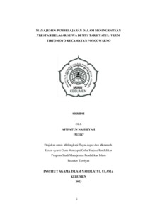 Afifatun Nahriyah, NIM. 1913167 and Dr. Eliyanto, M.Pd, . (2023) MANAJEMEN PEMBELAJARAN DALAM MENINGKATKAN PRESTASI BELAJAR SISWA DI MTS TARBIYATUL ‘ULUM TIRTOMOYO KECAMATAN PONCOWARNO. Diploma thesis, Institut Agama Islam Nahdlatul Ulama ( IAINU) Kebumen.