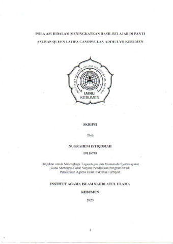 Nugraheni Istiqomah, 19116795 and Dr. Umi Arifah, S.Pd.I., M.M, 211408873 (2023) Pola Asuh Santri dalam Meningkatkan Hasil Belajar di Panti Asuhan Queen Latifa Candiwulan Adimulyo Kebumen. Other thesis, IAINU Kebumen.