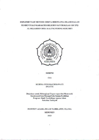 Kurnia Yuni Rachmawati, 19116731 and Oky Ristya Trisnawati, M.Pd, 2106109102 (2023) Implementasi Metode Cerita Bernuansa Islami dalam Pembentukan Karakter Religius Santri Kelas 1 di TPQ Al-Mujahidin Desa Kaleng Puring Kebumen. Other thesis, IAINU Kebumen.