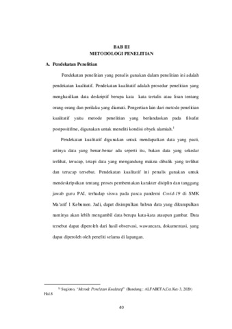 Wiji Astuti, 19116809 and Atim Rinawati, M.Pd, 2126058701 (2023) Peran Guru Pendidikan Agama Islam dalam Membangun Karakter Disiplin dan Bertanggung Jawab Siswa Pascapandemi Covid-19 di SMK Ma’arif 1 Kebumen. Other thesis, IAINU Kebumen.