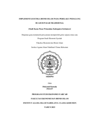 Diniyatul Kumala, 1921157 and Abdul Waid, M.S.I, 2116078202 (2023) IMPLEMENTASI ETIKA BISNIS ISLAM PADA PERILAKU PEDAGANG BUAH DI PASAR TRADISIONAL (Studi Kasus Pasar Petanahan Kabupaten Kebumen). Other thesis, IAINU Kebumen.