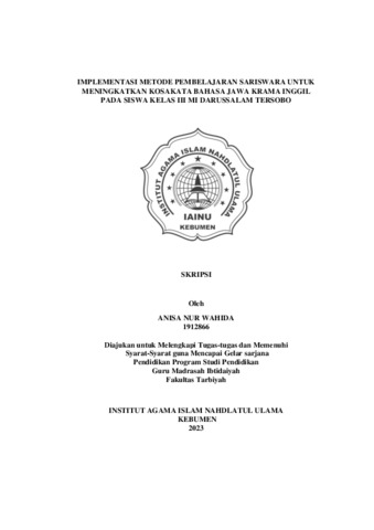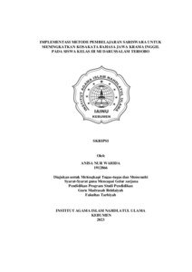 AnisaNurWahida.1912866. Implementasi Metode Pembelajaran Sariswara Untuk Meningkatkan Kosakata Bahasa Jawa Krama Inggil Pada Siswa Kelas III Mi Darussalam Tersobo