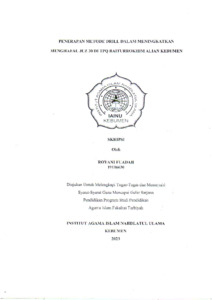 Royani Fuadah. 19116630. Penerapan Metode Drill dalam Meningkatkan Menghafal Juz 30 di TPQ Baiturrokhim Alian Kebumen. Tujuan yang ingin dicapai ialah: 1) Untuk mengetahui bagaimana penerapan metode drill dalam meningkatkan menghafal juz 30 di TPQ Baiturrokhim. 2) Untuk