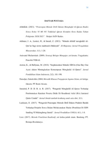 kemampuan santri membaca dan daya ingat santri dalam menghafal yang lemah, d) Kuranya peran dan perhatian orang tua dalam proses kegiatan anak mengaji. 3) Adanya faktor pendukung hafalan yaitu; a) adanya semangat dan keinginan, b) Adanya fasilitas pembelajaran, c) Adanya ustadz/ustadzah yang dengan sabar mendampingi santri dalam mengajar