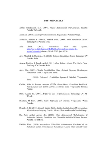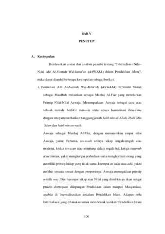 surga. Penelitian ini dikaji dengan studi kepustakaan (library research) yang diperoleh dari beberapa buku yang menkaji pemikiran-pemikiran Aswaja dan Pemikiran Pendidikan Islam dari Sejarah zaman Nabi sampai sekarang. Di analisis