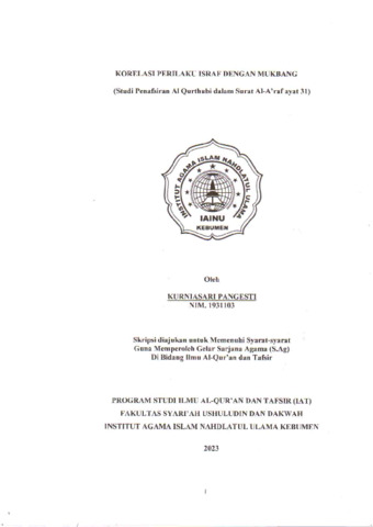 Kurniasari Pangesti, NIM.1931103 and Wahyuni Shifaturrohmah,M.S.I, . (2023) Korelasi Perilaku Israf Dengan Mukbang (Studi Penafsiran Al Qurthubi Dalam Surat Al-A‟raf ayat 31). Diploma thesis, Institut Agama Islam Nahdlatul Ulama ( IAINU) Kebumen.
