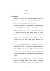 3,316 > t tabel yaitu 1,985. Kemudian variabel inklusi keuangan syariah berpengaruh positif tidak signifikan terhadap kinerja UMKM di Kecamtan Kebumen. Dengan hasil signifikansi 0,439 > 0,050 dan t hitung sebesar 0,777 <